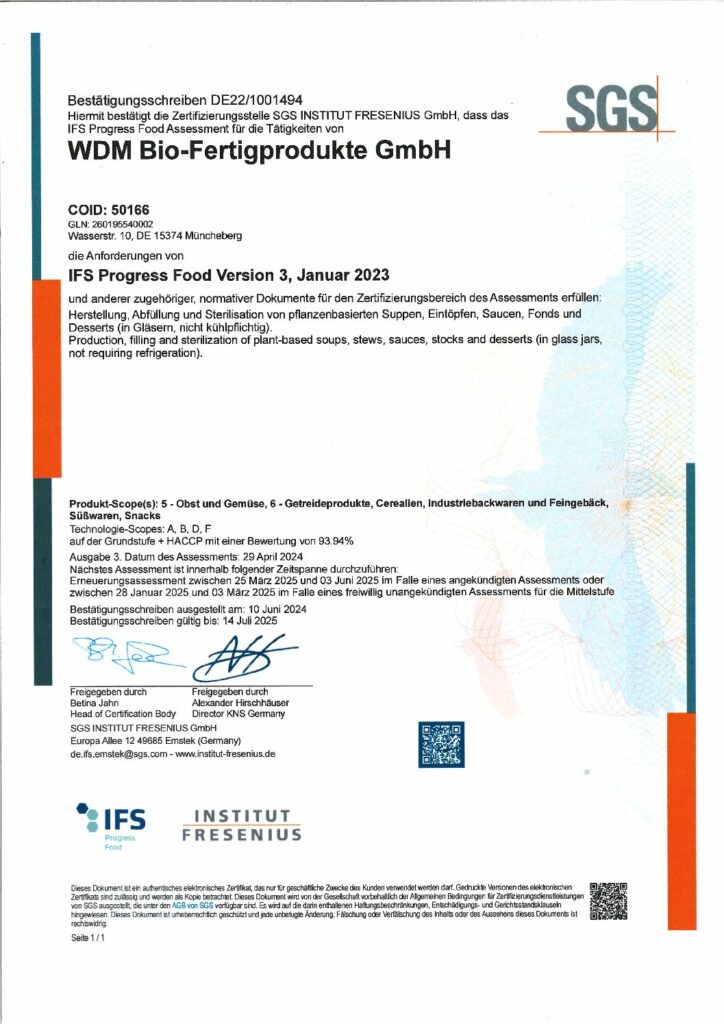 Die Kombination aus Bio- und IFS Progress Food Zertifizierung in der Produktion unserer veganen Fertigprodukte bietet zahlreiche Vorteile: